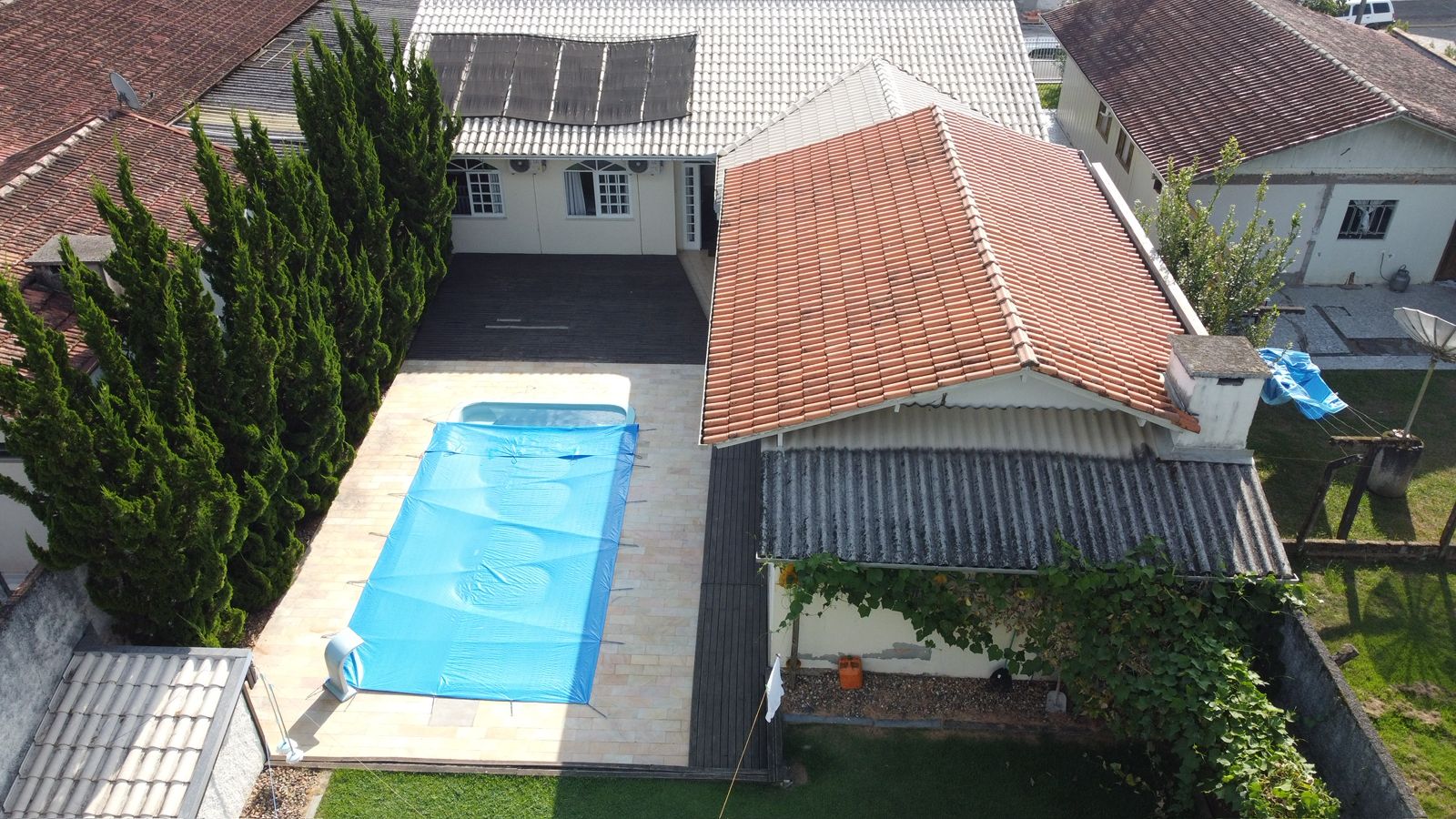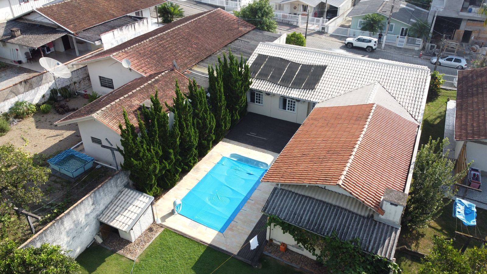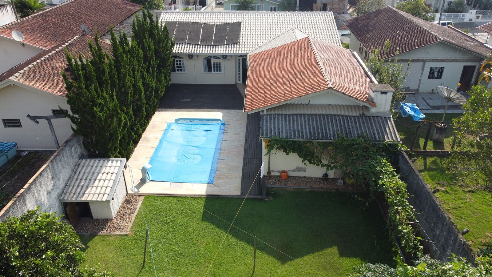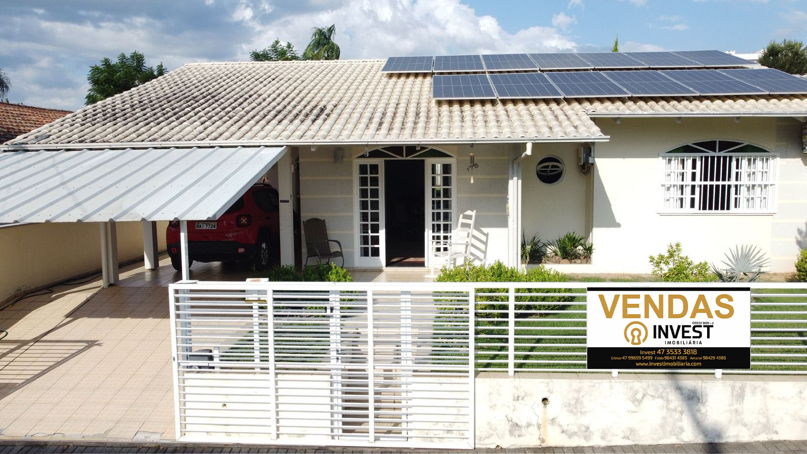 O imóvel conta com 1 suíte + 2 quartos, além de piscina e uma ótima área de festas, perfeita para momentos de lazer com a família e amigos. Possui também despensa e sistema de energia solar, trazendo mais economia e eficiência.