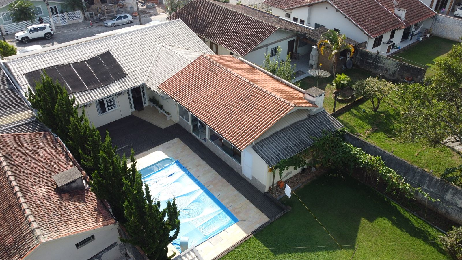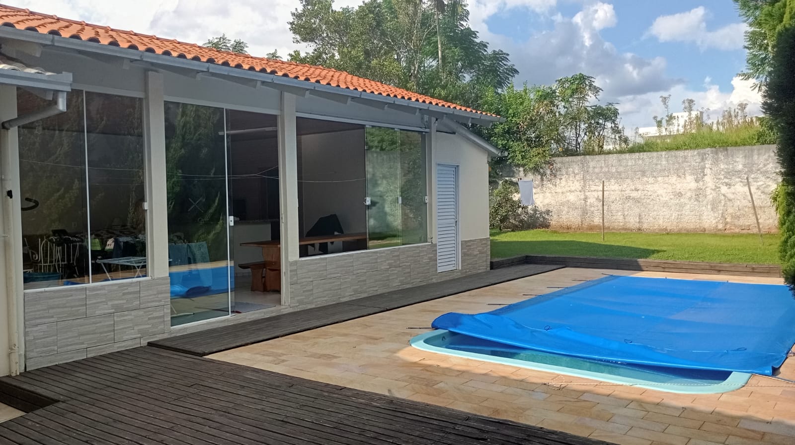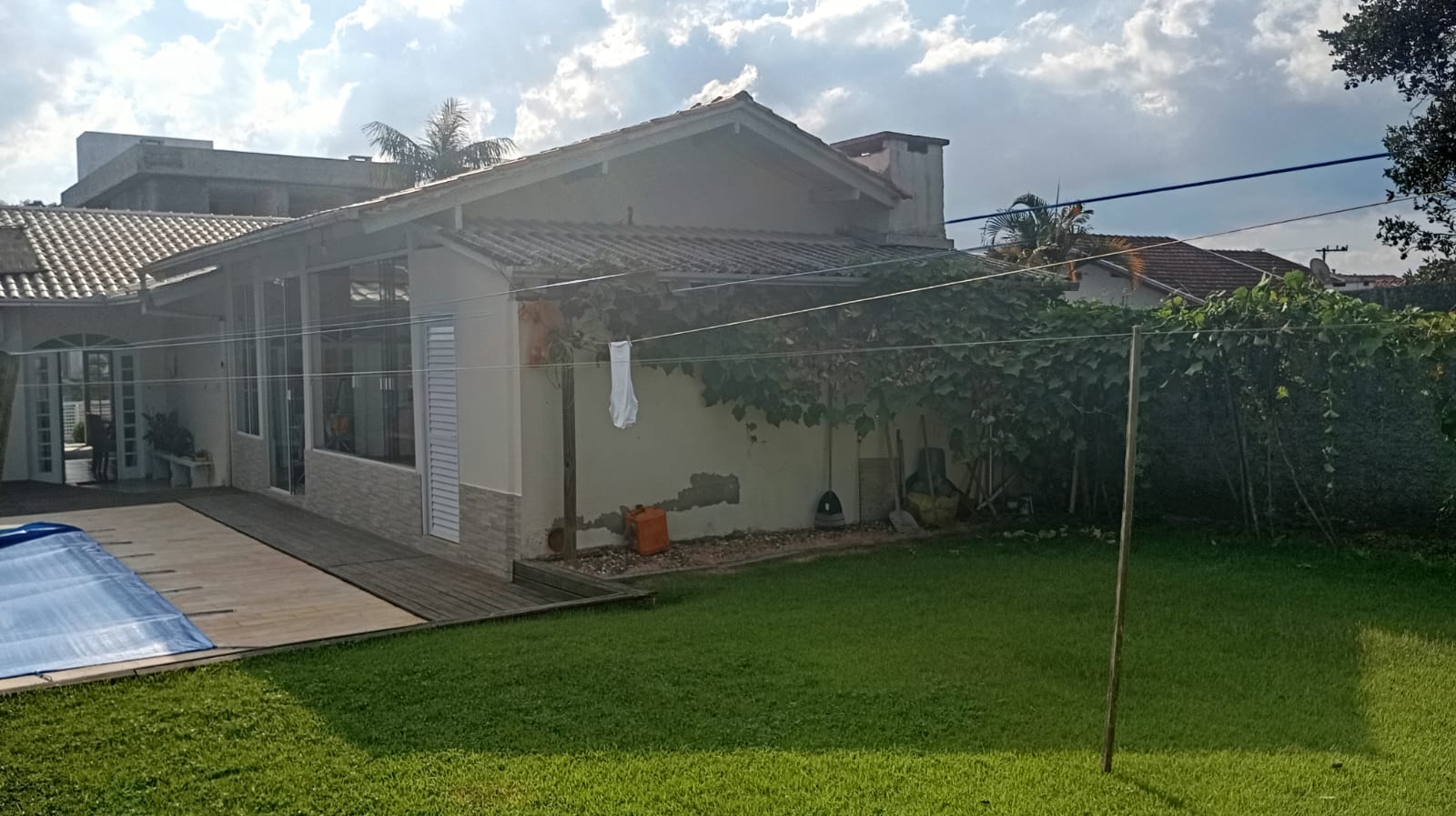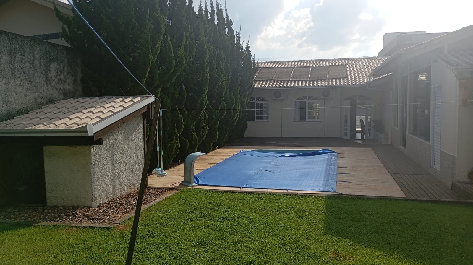 O imóvel conta com 1 suíte + 2 quartos, além de piscina e uma ótima área de festas, perfeita para momentos de lazer com a família e amigos. Possui também despensa e sistema de energia solar, trazendo mais economia e eficiência.